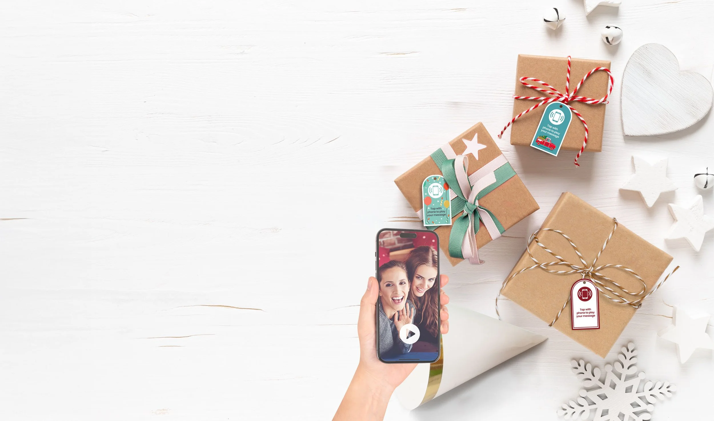 Make your gift unforgettable with a gift tag that plays your message when touched by a phone.